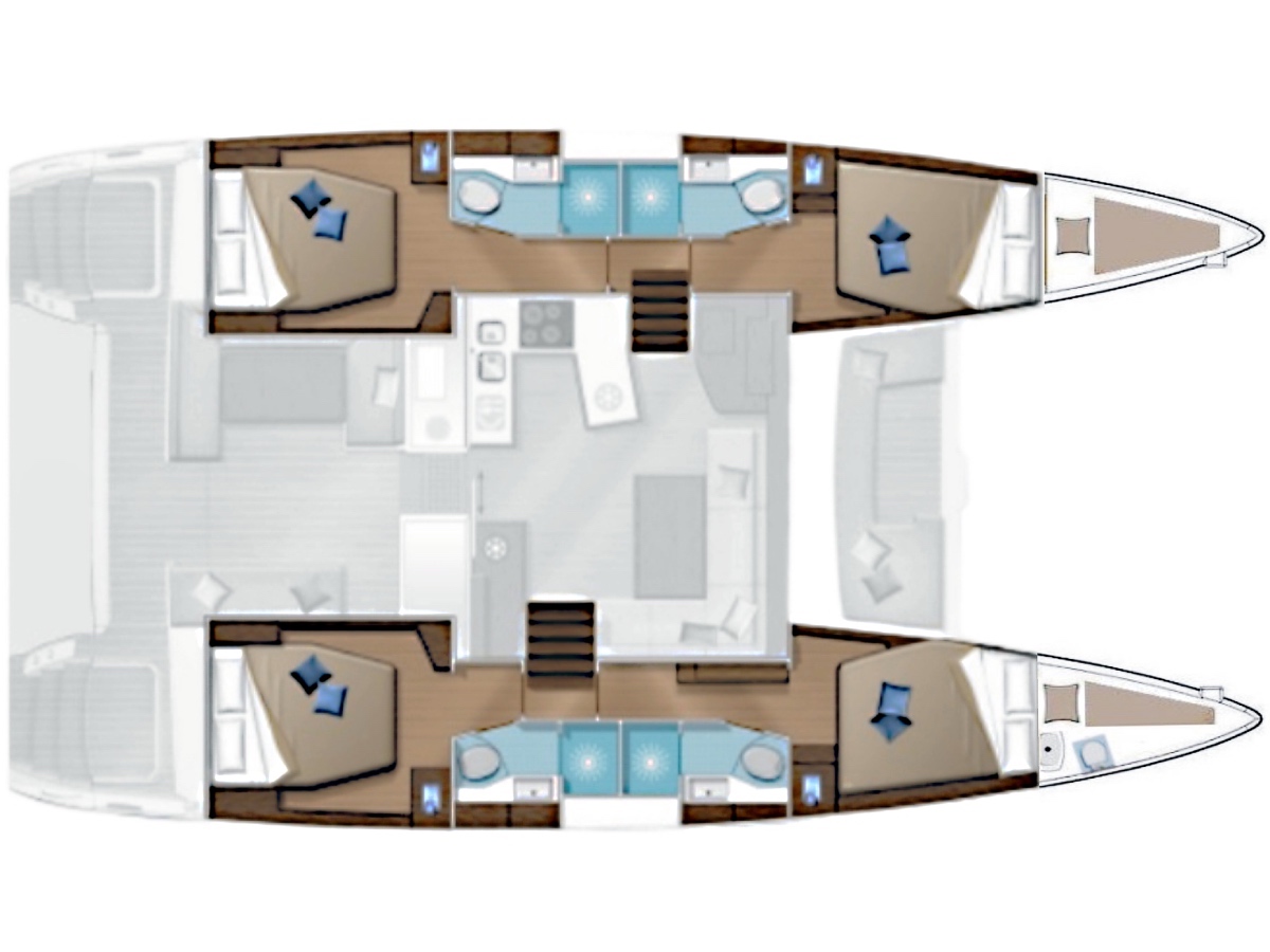 For your holidays on the water this excellent Lagoon 450 Flybridge could be just the perfect boat. It is distributed over a length of 13.96 m. In total there are 6 cabins for your comfort and those contain an overall number of 10 beds (max permitted 12 people).