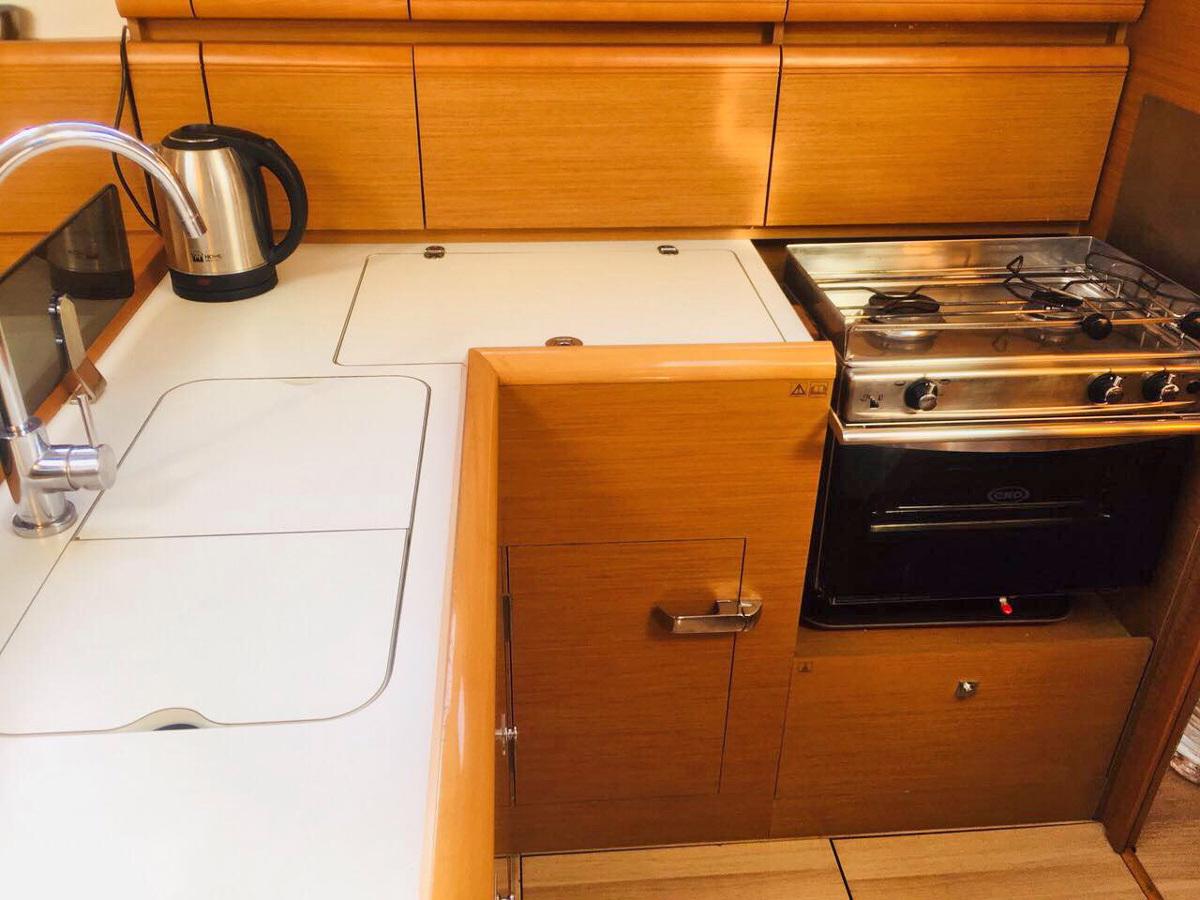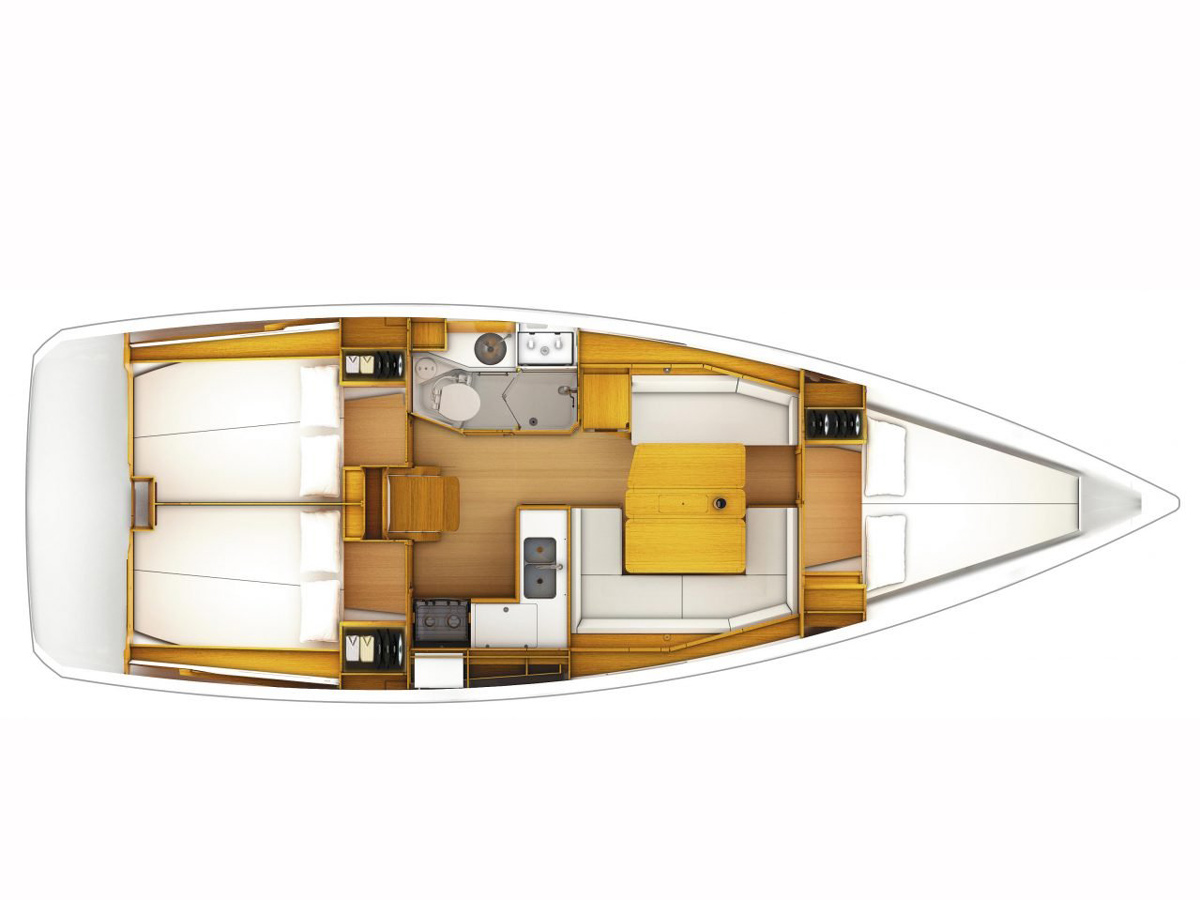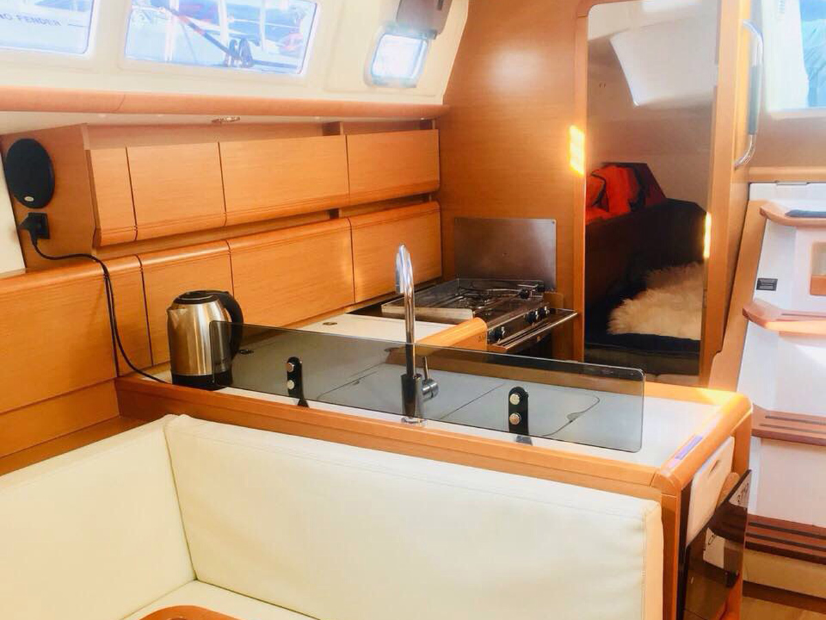 This Jeanneau 379 comfortably sleeps 6 people in 3 double cabins (max permitted 8 people). Perfect for groups of friends or 2 families. Great sailing behaviour and its excellent condition guarantee your unforgettable trip.